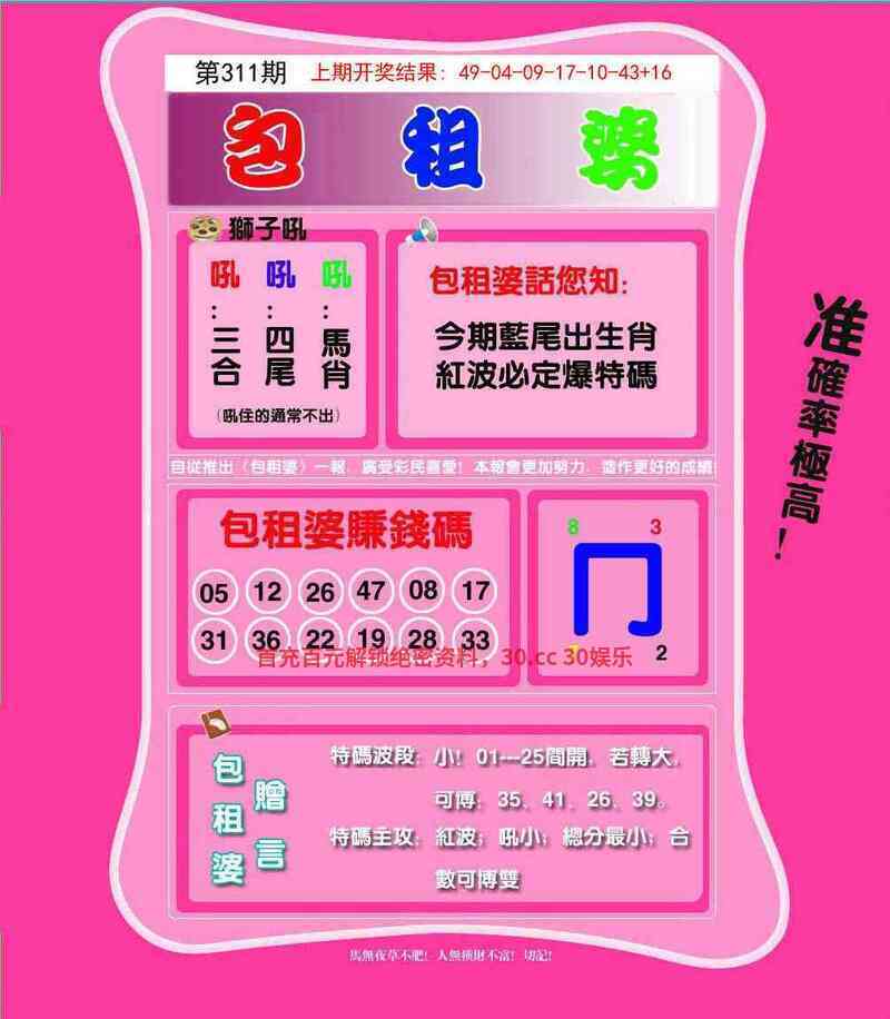 312期:必中六合网【四肖八码】连爆准中